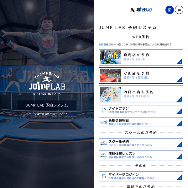トランポリンパーク JUMP LAB様の専用予約システムを構築。UIデザインから管理画面、予約システムの開発、保守まで行っております。
